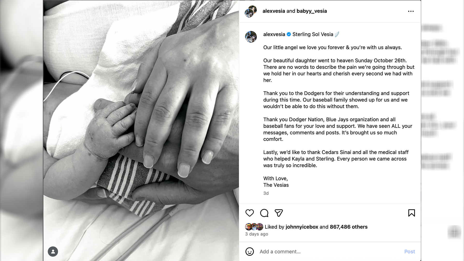 Days after the Dodgers secured their second consecutive championship, Vesia shared heartbreaking news — his family had suffered the loss of their baby girl. The fan-driven campaign became even more meaningful, symbolizing how a love for the game can unite people in empathy and kindness.