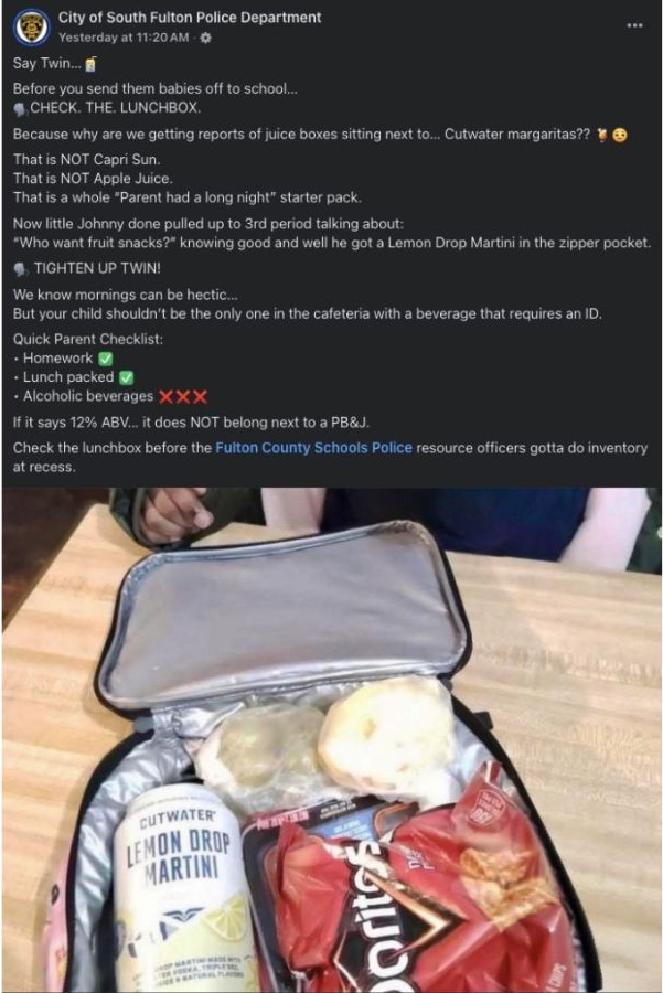 The South Fulton Police Department is going viral again — and this time, they’ve got a message for parents: make sure your kid’s lunchbox doesn’t require a government-issued ID.